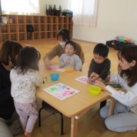 ままごとコーナーでは、食べ物を並べたりお皿に盛り付け『はい、どうぞ💓』とやりとりを楽しむ姿が。