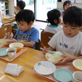 みんなに、『いつもの米と違って今日はアルファ米だよ』と伝えると・・・