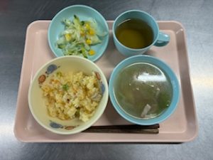 チキンピラフ レタススープ コーンサラダ