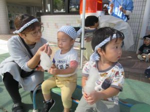 たんぽぽ組さん・さくら組さんは綿菓子を食べてニッコリ😊