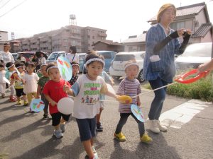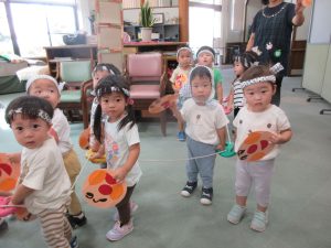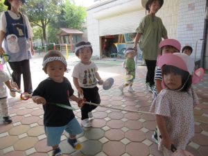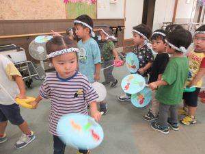 つくし組さん、すみれ組さんは団扇を持ってワショイ・ワッショイ🎵