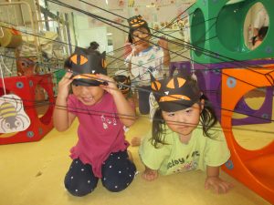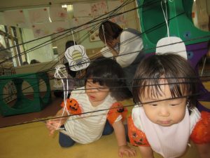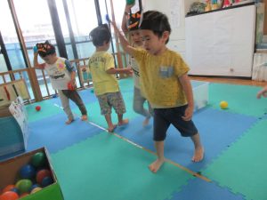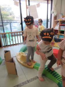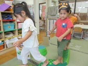 👻オバケにつかまらないように平均台を渡っていきました。
