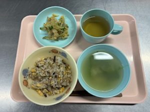 ひじきチャーハン 中華スープ ごまあえ