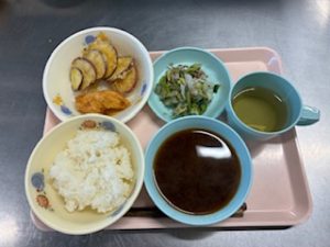 ごはん みそ汁 さつまいもとささみの天ぷら ゆかりあえ