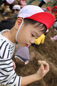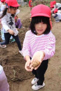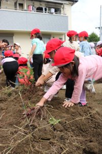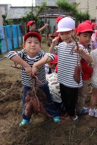 今日は年長さんが畑に行き、さつまいも掘りをしてきました😊