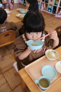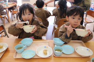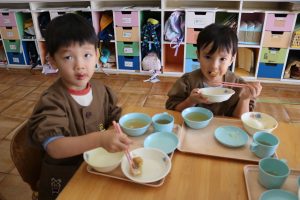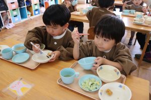 今日は白身魚のカレー揚げが人気でパクパク食べる子どもたち😊