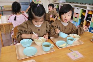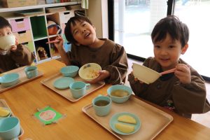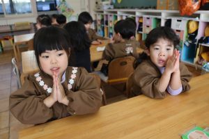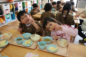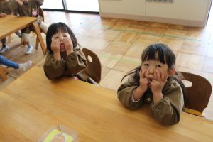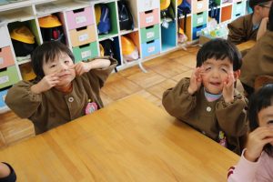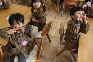 食後にみんなでハロウィンにちなんで、おばけに変身して遊んでいます。