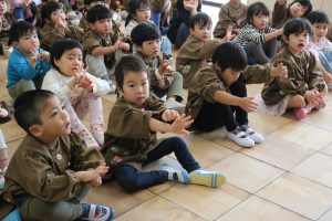 『おとうさん、はい!』と元気にいいながら先生の真似をする子どもたちでした😊