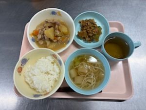 ごはん 肉じゃが そうめん汁 切干大根の納豆あえ