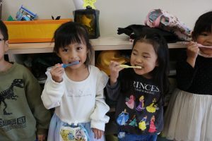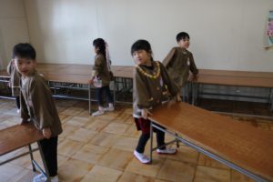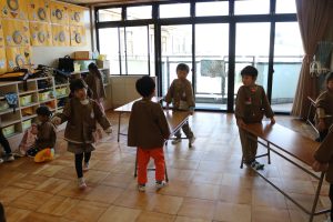 遊ぶ準備も自分たちで・・・机を並べたり・・・玩具を出したり・・・
