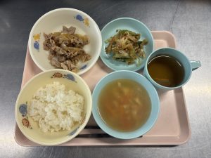 ごはん すまし汁 豚肉のしょうが炒め おかかあえ みかん