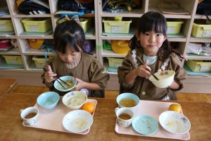 今日は豚肉のしょうが炒めが、お気に入りだったと教えてくれた子どもたち!
