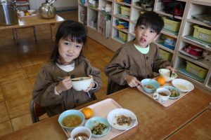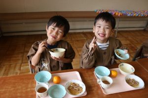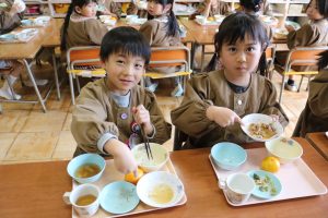 今日は豚肉のしょうが炒めが、お気に入りだったと教えてくれた子どもたち!