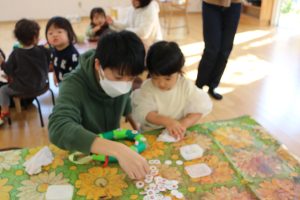 ヌルヌルしてる~とダイナミックに糊付けをするお友だちなどいろいろ😊