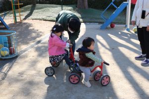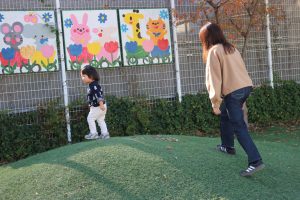 その後は天気が良かったので、本園の方へ行き園庭であそびました。