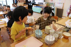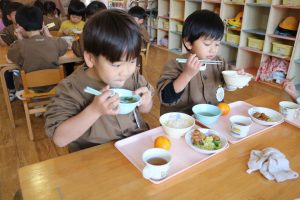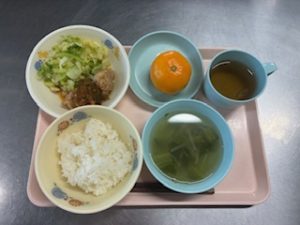 ごはん 油淋鶏 チンゲンサイスープ みかん