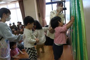 年長児に手伝ってもらって一緒にゲームを楽しむ姿が!