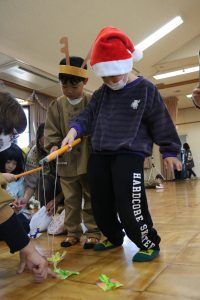 じゃんけんをしてサンタとトナカイに変身🎅その後スノーマン崩し・・・プレゼント釣りをして飾りつけ・・・
