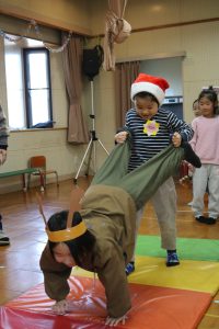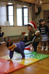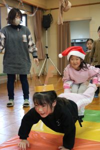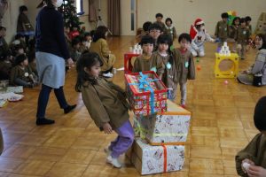 じゃんけんをしてサンタとトナカイに変身🎅その後スノーマン崩し・・・プレゼント釣りをして飾りつけ・・・