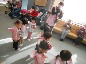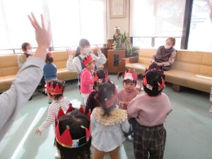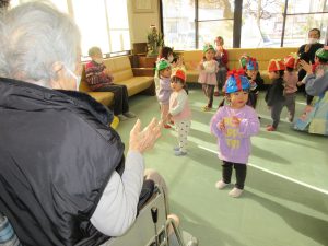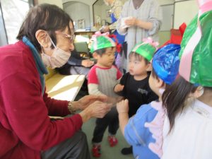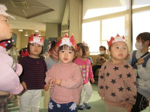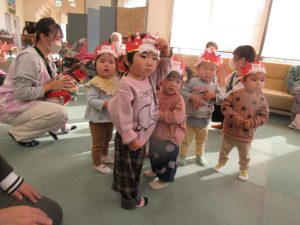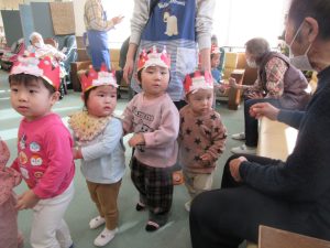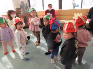 プレゼントの帽子がとっても似合って、可愛いすみれ組さん。