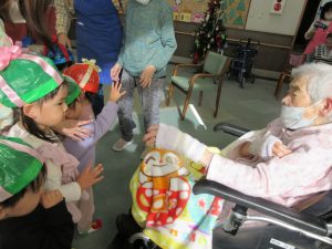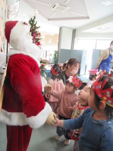 おじいちゃん、おばあちゃんの後にサンタさんとも握手をしてきました。