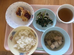 ごはん 和風ハンバーグ すまし汁 おかかあえ