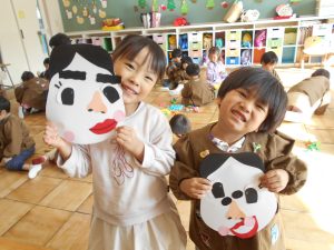 正月遊びの「福笑い」をみんなで先取りしてやってみました!