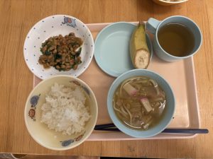 ごはん 肉うどん 切干大根の納豆あえ ばなな