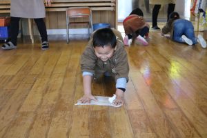 年中さんは、憧れの年長さんの真似をしてお掃除の雑巾がけ✨