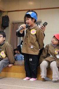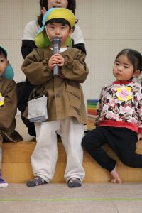 大勢のお友だちの前でも、元気に名前やクラス、何歳になったかをマイクを持って元気に発表する誕生児のお友だち🎵