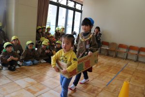 誕生会後は、みんなで縦割りのゲームを楽しみました。