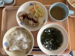 ごはん ほうれん草スープ 豆腐とひじきのハンバーグ 付け合せ