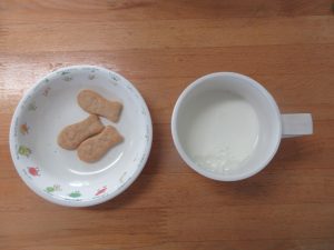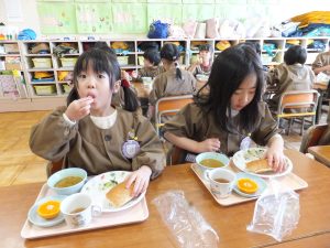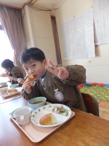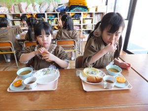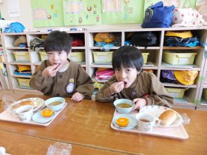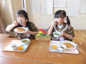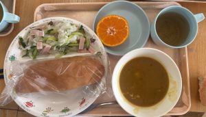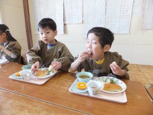 今日はカレーシチューに、付けパンして食べる子が多かったです。