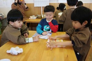 ハンカチを並べて、ジャンケンポン!!