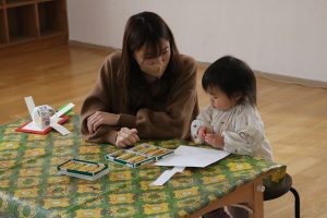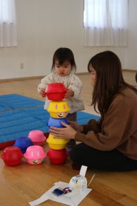倒さずに高く積めるかな・・・倒れても何度でもチャレンジ!!