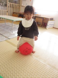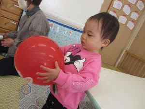 また風船あそびでは、大好きなアンパンマンの絵を描いてもらって大喜び。