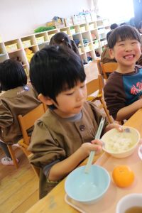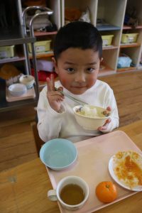 せんせ~い!!かっこよく食べる姿写真撮って!!とアピールしてくれたお友だちです😊