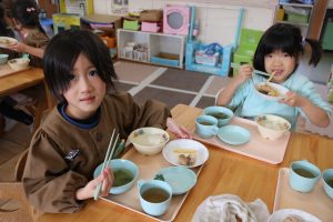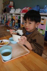 ごはん 魚のかりん揚げ ポテトフライ 中華スープ グリーンサラダ