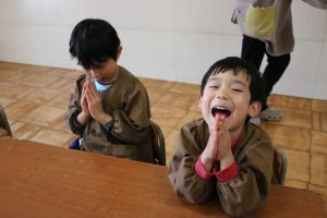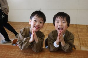食事の前後のご挨拶はお当番さんが前に立って先生役を!