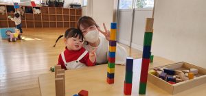 お友だちと、どっちが高く積めるか競争だぁ~💓