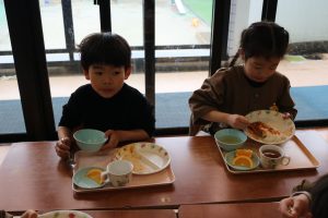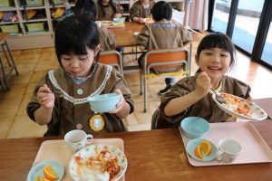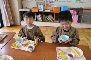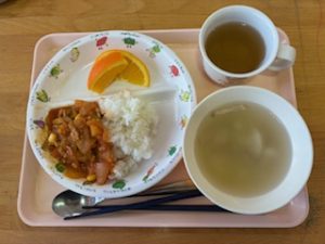 カレー風味のトマトライス カリフラワーのスープ オレンジ