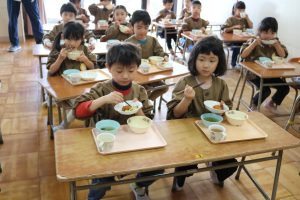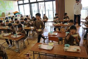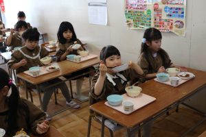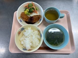 ごはん 白身魚のフライ 野菜スープ 付け合せ