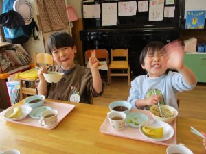 カメラを向けると『おいし~💓』といった表情をする子どもたち。