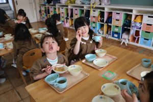 みんなで食べる給食はおいしいね💓