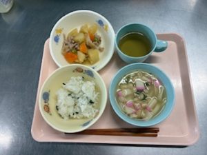 わかめごはん 肉じゃが きしめん汁