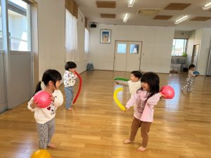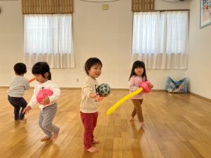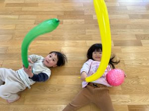 広い体育館で思いっきり走ったり、風船やボールで遊んだりして楽しみました‼