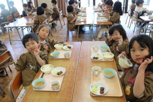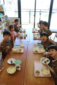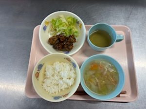 ごはん 白菜スープ ひじきとにらのつくね 付け合せ