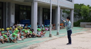今日は、消火器の使い方や火災がおきた時どうするのかなど話を聞きました。真剣に話を聞く子どもたち。 先生たちも消火器の...