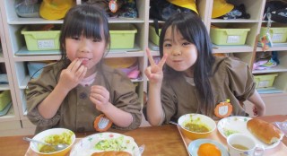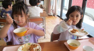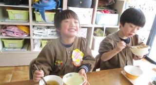 ドライカレー 冬野菜スープ ヨーグルトポテトスナック ぶどうジュース今日の給食風景😊 おかわりもたくさん💓食後はご...