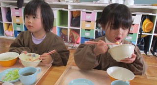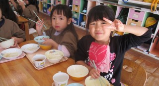 豚丼 みそ汁 白和え野菜ジュース せんべい チーズ今日の給食風景です😊みんなお茶碗を持って上手に食べていますね! お...